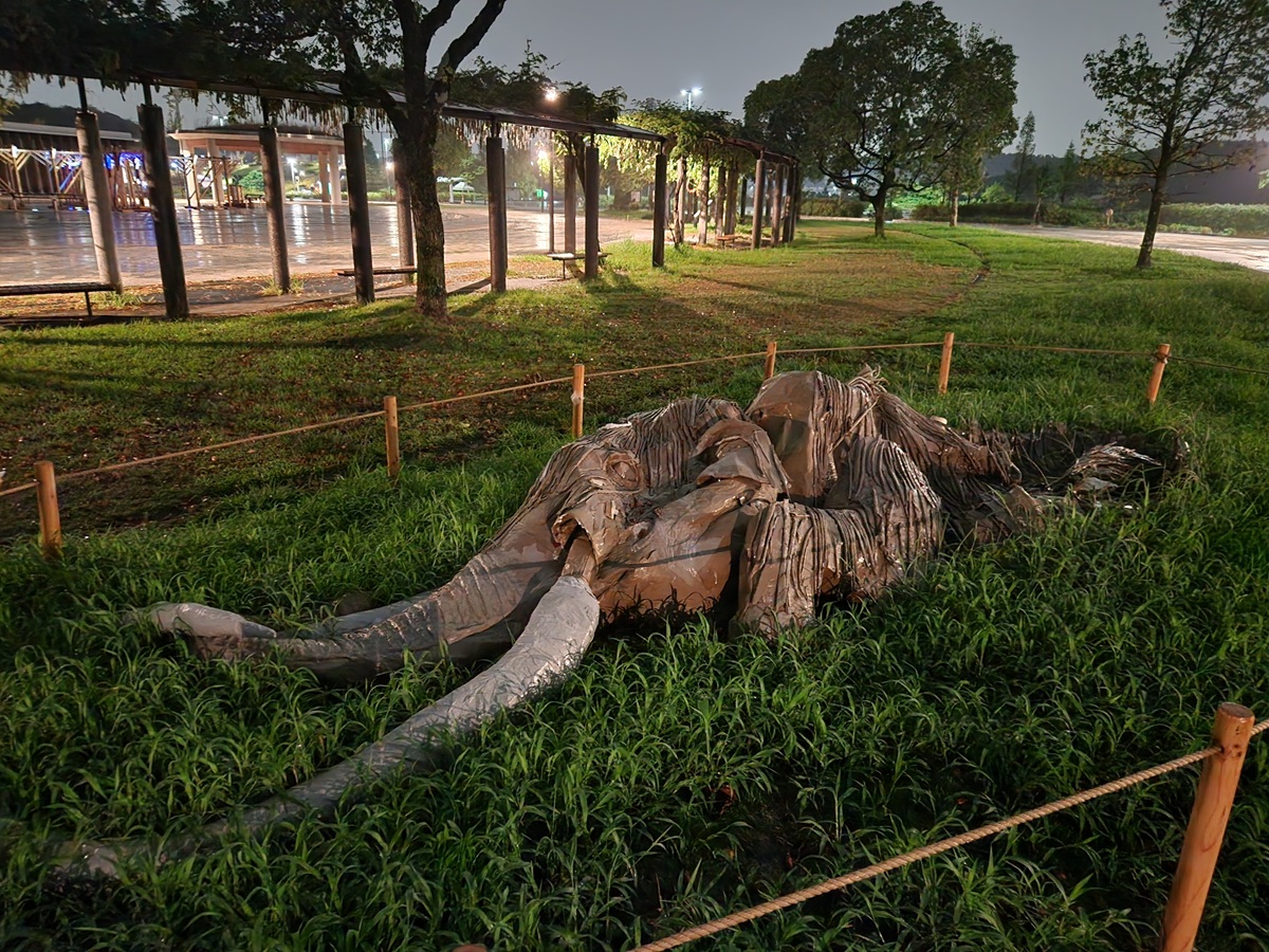 ダンボール作品が風雨にさらされ崩れていく様子を作品にしています。
